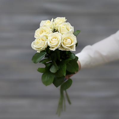 Букет из 7 кремовых роз (Россия) с лентой 60 см| 1 700 Р | без скидки |