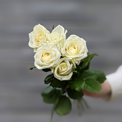 Букет из 5 белых роз (Россия) с лентой 60 см| 1 400 Р | без скидки |