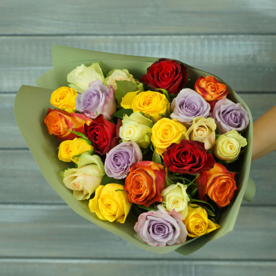 27 разноцветных роз в крафте Кения 40 см.| 3 400 Р | без скидки |