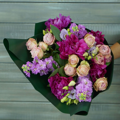 Букет из пионов, роз и маттиолы| 7 700 Р | без скидки |