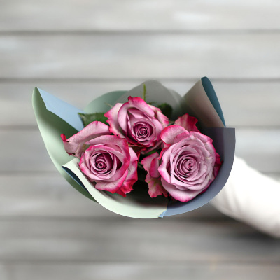 3 фиолетовые розы Эквадор 50 см в упаковке| 1 000 Р | без скидки |