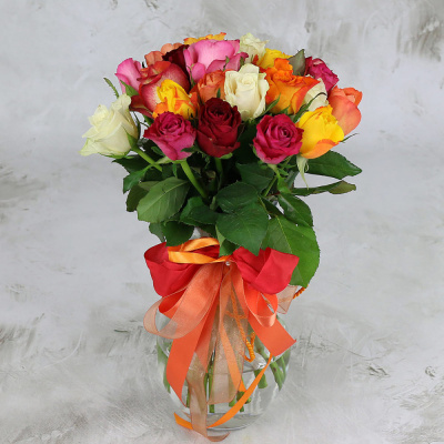 23 разноцветные розы с лентой Кения 40 см.| 3 000 Р | без скидки |