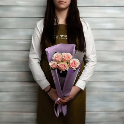 5 нежно-розовых роз Эквадор 50 см в упаковке| 2 000 Р | без скидки |