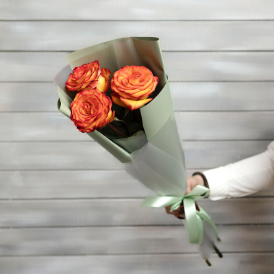3 оранжевые розы Эквадор 50 см в упаковке| 1 100 Р | без скидки |