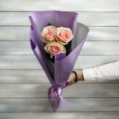 3 нежно-розовые розы Эквадор 50 см в упаковке| 1 000 Р | без скидки |