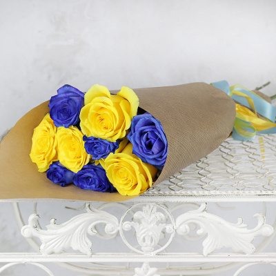 Букет из 9 роз, синих и желтых в крафте| 4 100 Р | без скидки |