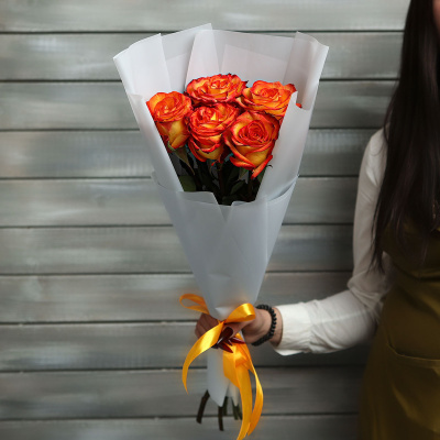 5 оранжевых роз Эквадор 50 см в упаковке| 1 900 Р | без скидки |