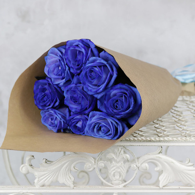 Букет из 9 крашеных синих роз в крафте| 4 600 Р | без скидки |