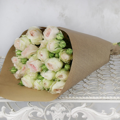Букет из пионовидных кустовых роз Клустер в крафте| 4 800 Р | без скидки |