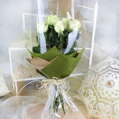 Роза кустовая Клустер, Плёнка прозрачная, Лента, Бумага упаковочная Крафт