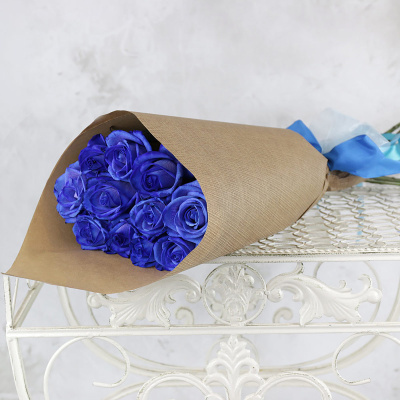 Букет из 11 крашеных синих роз в крафте| 5 000 Р | без скидки |