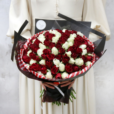 Букет из 51 розы - Красное и белое Кения 40 см.| 5 320 Р | без скидки |