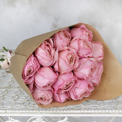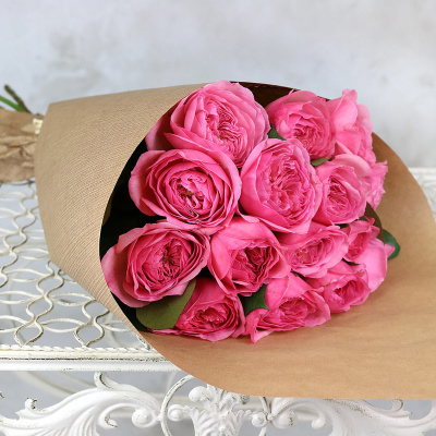 Букет из 15 розовых пионовидных роз в крафте| 7 000 Р | без скидки |