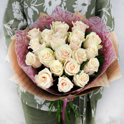Букет из 21 кремовой розы Россия 60 см.| 4 200 Р | без скидки |