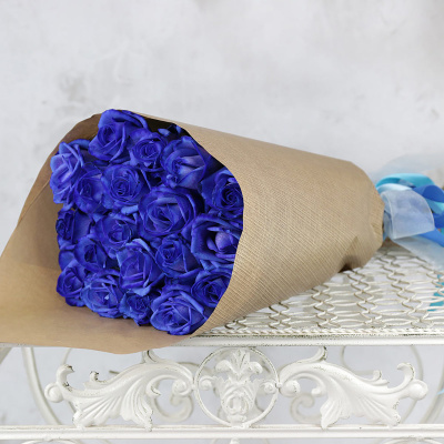 Букет из 19 крашеных синих роз в крафте| 8 100 Р | без скидки |