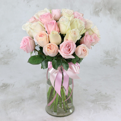 Букет из 25 сортовых розовых роз| 12 900 Р | без скидки |