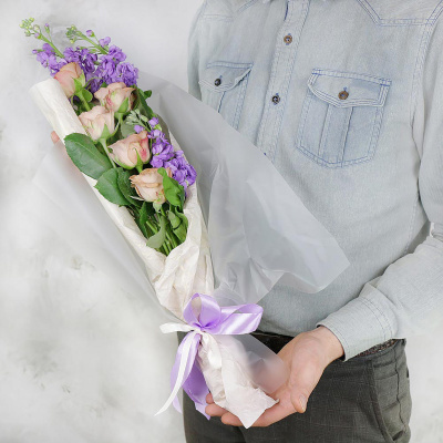 Нежный букет из роз и маттиол| 3 700 Р | без скидки |