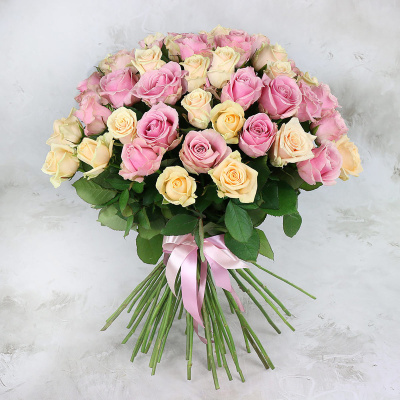 Букет из 51 розовой и кремовой розы Россия 60 см.| 7 700 Р | без скидки |
