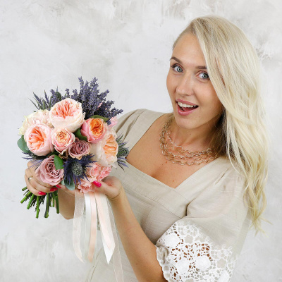 Букет из пионовидных роз, лаванды и эрингиума| 8 200 Р | без скидки |