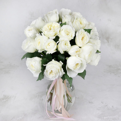 Букет из 25 белых пионовидных роз Александра| 14 400 Р | без скидки |