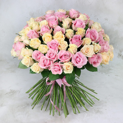 Букет из 101 розовой и кремовой розы Россия 60 см.| 15 100 Р | без скидки |
