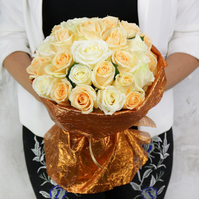 Роза кустовая Клустер кремовая, Упаковка в ассортименте, Лента, Плёнка прозрачная
