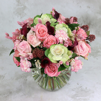 Букет из брассики, роз и гвоздики| 14 400 Р | без скидки |