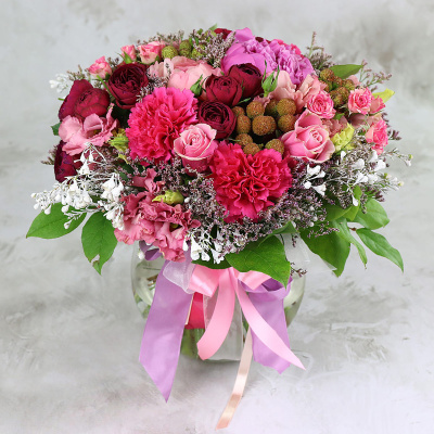 Букет с кустовой розой, гвоздикой и пионами| 15 400 Р | без скидки |