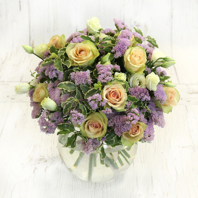 Букет из роз и сиреневой статицы| 7 900 Р | без скидки |