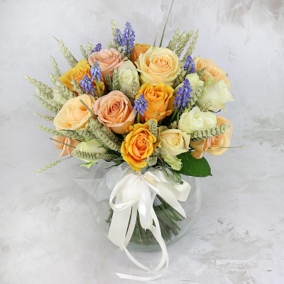 Букет из роз, мускари и пшеницы| 6 500 Р | без скидки |
