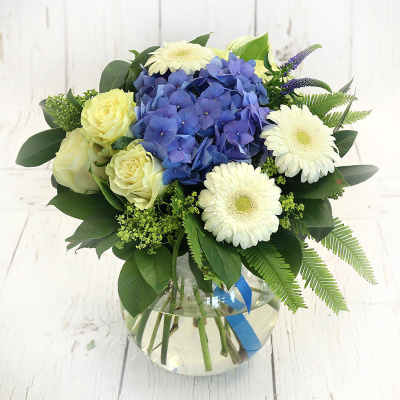Букет из белых роз, гербер и гортензии| 6 200 Р | без скидки |