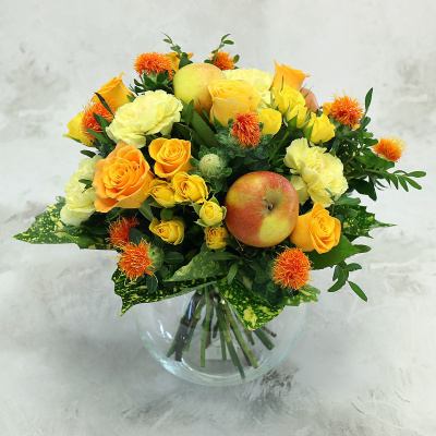 Букет из роз и гвоздик с яблоками| 4 900 Р | без скидки |