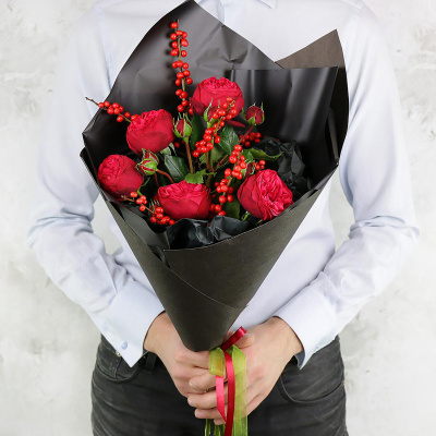 Букет роз Александра и илекса в стильной упаковке| 5 900 Р | без скидки |