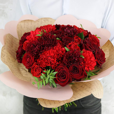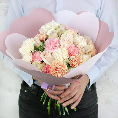 Букет из гвоздик и роз в оригинальной упаковке| 6 300 Р | без скидки |