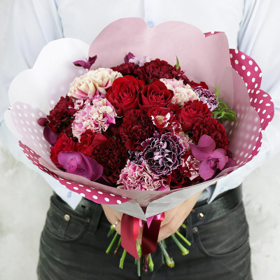 Букет из гвоздик, кустовых роз и орхидей| 6 100 Р | без скидки |