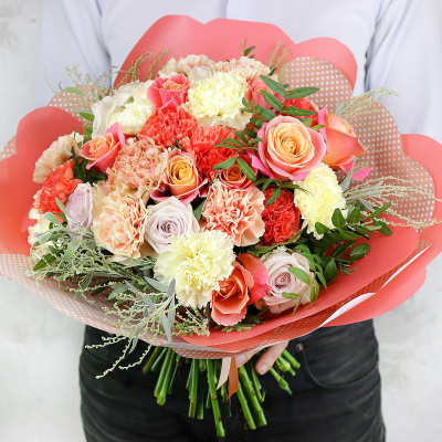 Букет из гвоздик, роз и кустовых роз| 6 900 Р | без скидки |