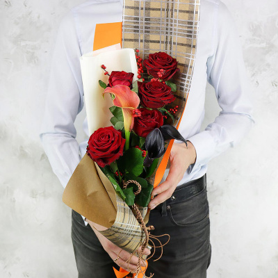 Букет из калл, роз и илекса| 4 500 Р | без скидки |