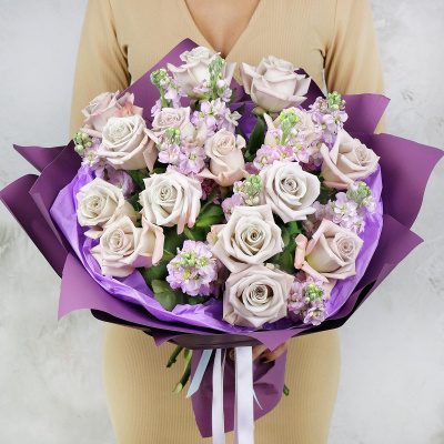 Букет из сиреневых роз и маттиол| 9 700 Р | без скидки |