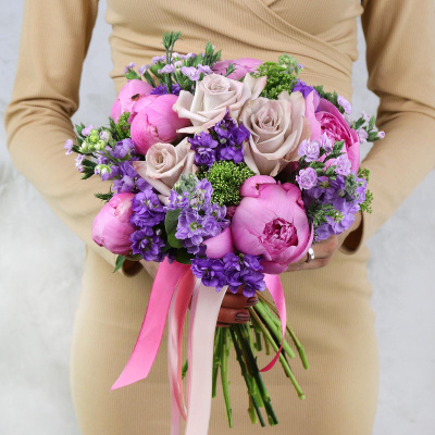 Букет из пионов, роз и фрезий| 6 100 Р | без скидки |