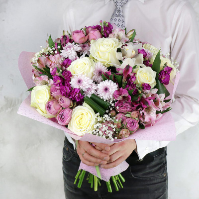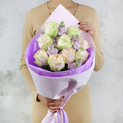 Нежный букет из роз и маттиолы| 5 800 Р | без скидки |
