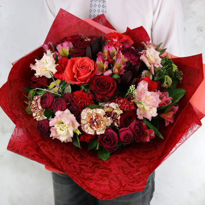 Букет из роз, гвоздик, хризантем и бовардий| 13 600 Р | без скидки |