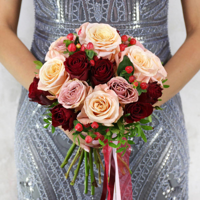 Букет из роз, гиперикума и салала| 6 200 Р | без скидки |