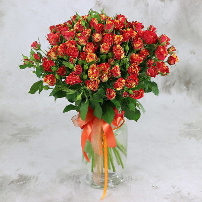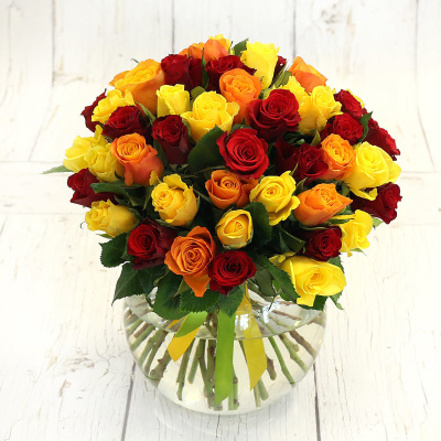 Букет из 51 красной, желтой и оранжевой розы Кения 40 см.| 5 320 Р | без скидки |