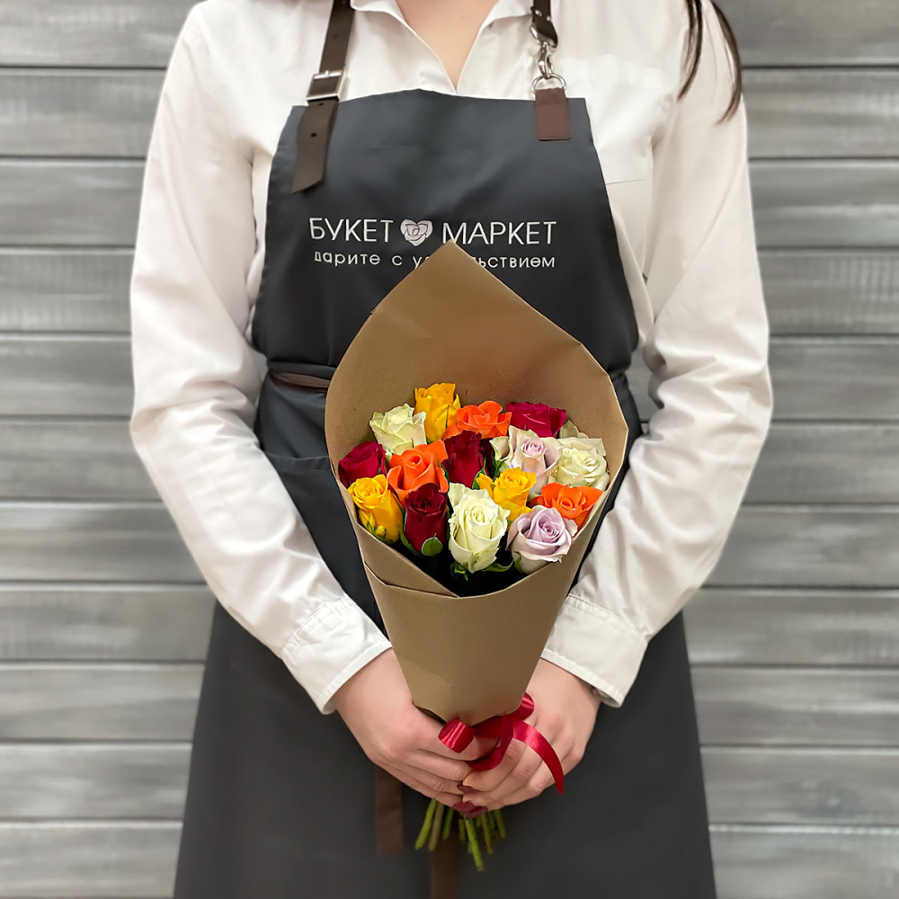 Состав: Роза Микс 40 см, Бумага упаковочная Крафт, Лента