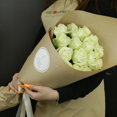 Букет из 15 белых роз в упаковке Россия 60 см.| 4 000 Р | без скидки |