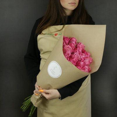 Роза 40 см розовая, Роза 40 см розовая, Роза 40 см розовая, Роза 40 см розовая, Бумага упаковочная Крафт, Плёнка прозрачная
