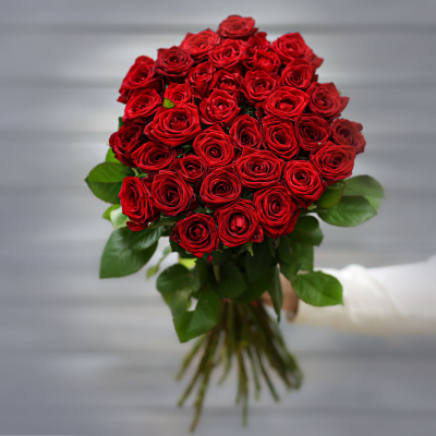 Букет из 35 красных роз (Россия) с лентой 60 см| 7 200 Р | без скидки |