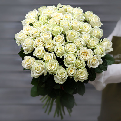 Букет из 51 белой розы (Россия) с лентой 60 см| 9 400 Р | без скидки |