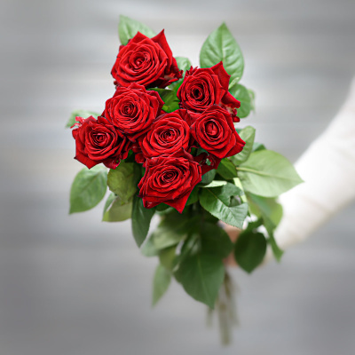 Букет из 7 красных роз (Россия) с лентой 60 см| 2 200 Р | без скидки |