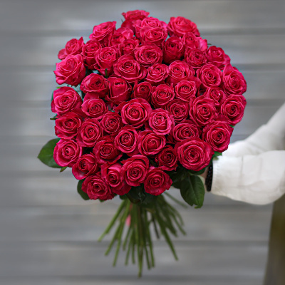 Букет из 51 малиновой розы (Россия) с лентой 60 см| 8 800 Р | без скидки |